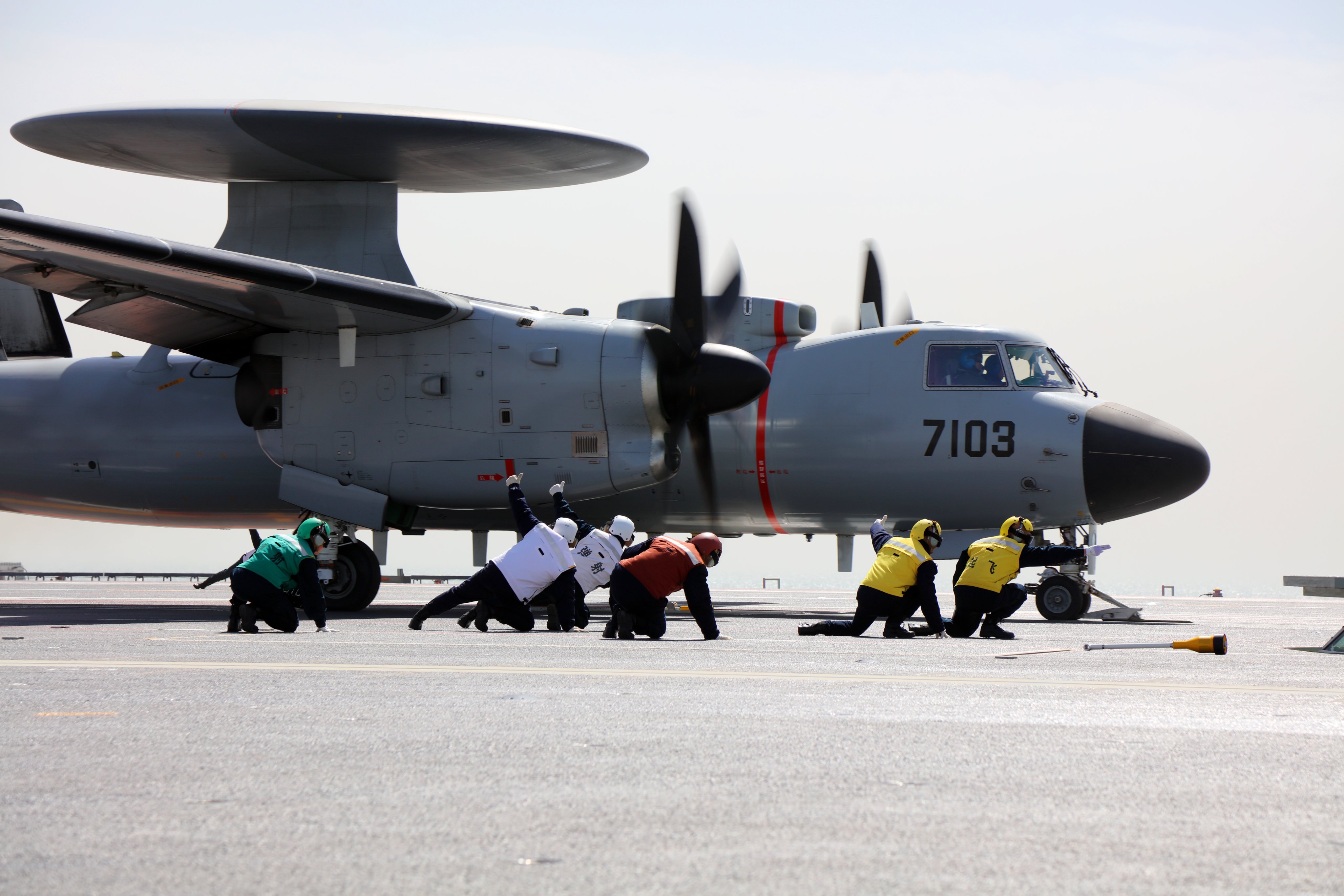 As for the KJ-600, the size and performance of this aircraft mean that it’s only suitable for CATOBAR operations, restricting its use to Fujian and any follow-on carriers. At least three examples are seen on the deck of Fujian. This aircraft will fulfill the same role as the U.S. Navy’s E-2 Hawkeye, and, although not a direct copy, it is extremely similar both in size and overall design.