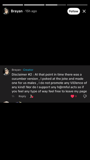 The original poster of the video stated “Disclaimer: At that point in time [Video was posted in July 2024] there was a cucumber version, I poked at the joke and made one for us males. I do not promote any violence of any kind! Nor do I support any harmful acts so if you feel any type of way feel free to leave my page.”
