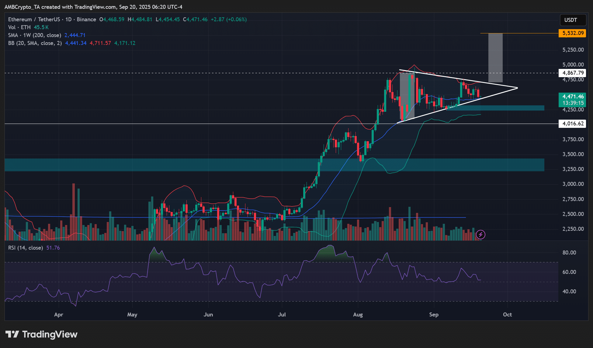 Ethereum [ETH] price has pulled back about 10% from the recent all-time high (ATH) of $4.95K hit in August.
