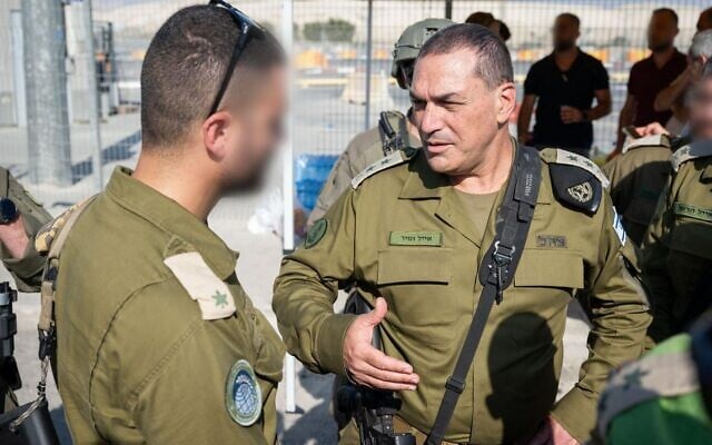 IDF Chief of Staff Lt. Gen. Eyal Zamir speaks to an officer at Allenby Crossing, a day after a deadly attack, September 19, 2025. (Israel Defense Forces)