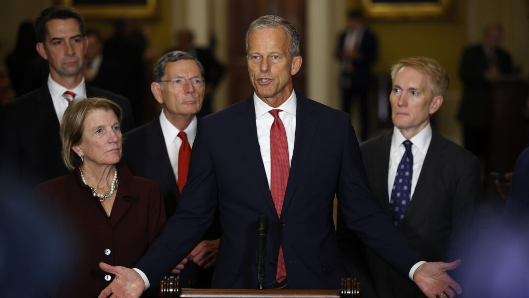 Senate Majority Leader John Thune, R-S.D., and other members of Senate GOP leadership spoke with reporters in the Capitol on Tuesday afternoon.