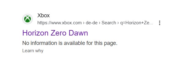 On your browser, if you currently search for Horizon Zero Dawn Xbox, you can see a link to the game for Xbox. However, if you click on it, it takes you to the German Xbox page, but there, it says that the requested page is not available.