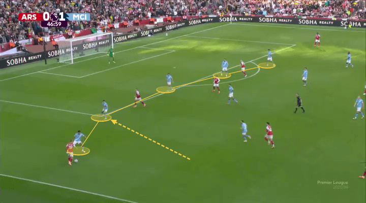 City, it should be acknowledged, scored an outstanding breakaway goal through Erling Haaland after eight minutes, and at 1-0 up, were entitled to sit back and defend. The onus was on Arsenal to get back into the game, but Mikel Arteta had selected the same midfield trio he used in Arsenal’s 1-0 loss away to Liverpool, with Declan Rice and Mikel Merino flanking Martin Zubimendi.