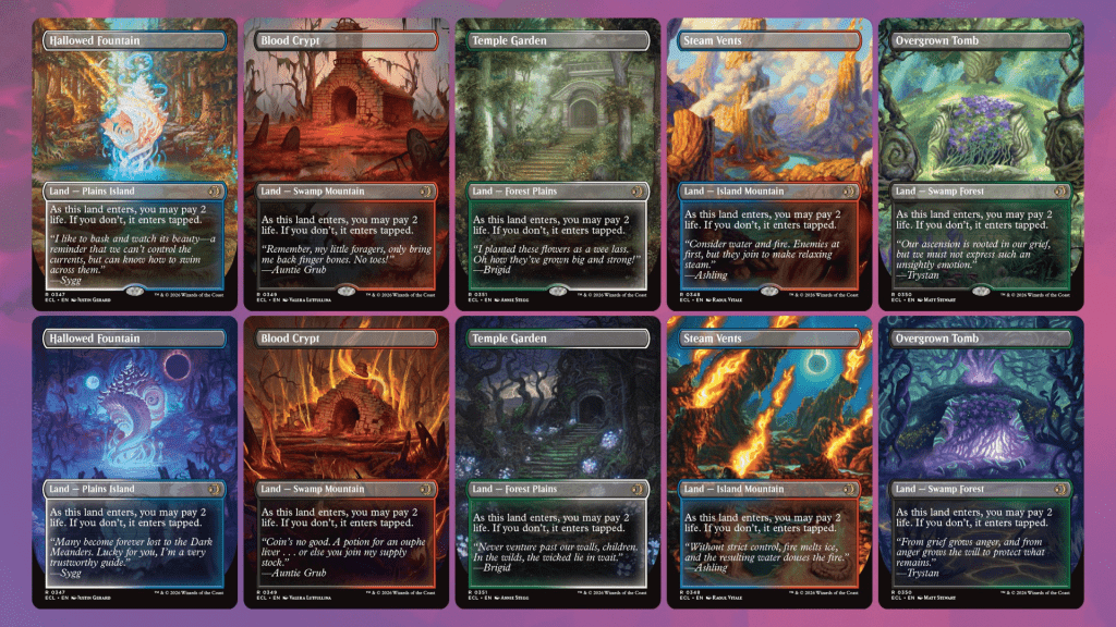 We knew the other half of the shocks were coming after the first half came out in Edge of Eternities. These ECL versions are double-sided (same card on both sides) and complete the full shock land cycle for Standard.