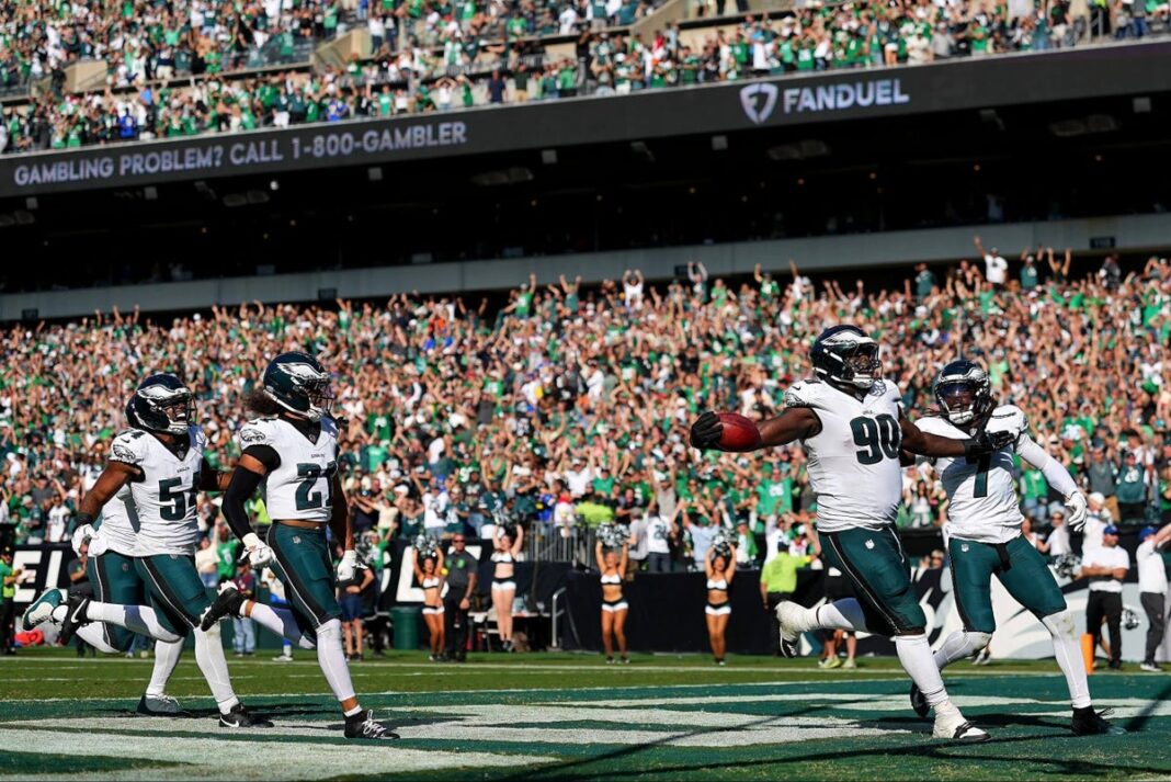 Leading by 1 point, Eagles defensive tackle Jordan Davis swatted down a 44-yard walk-off field goal attempt by the Rams’ Joshua Karty and returned the ball 61 yards for a game-winning touchdown. Davis, at 6 feet 6, 336 pounds, became the heaviest player in NFL history to return a blocked field goal 50-plus yards for a TD, and he reached the fastest top speed for any player over 330 pounds since at least 2017.